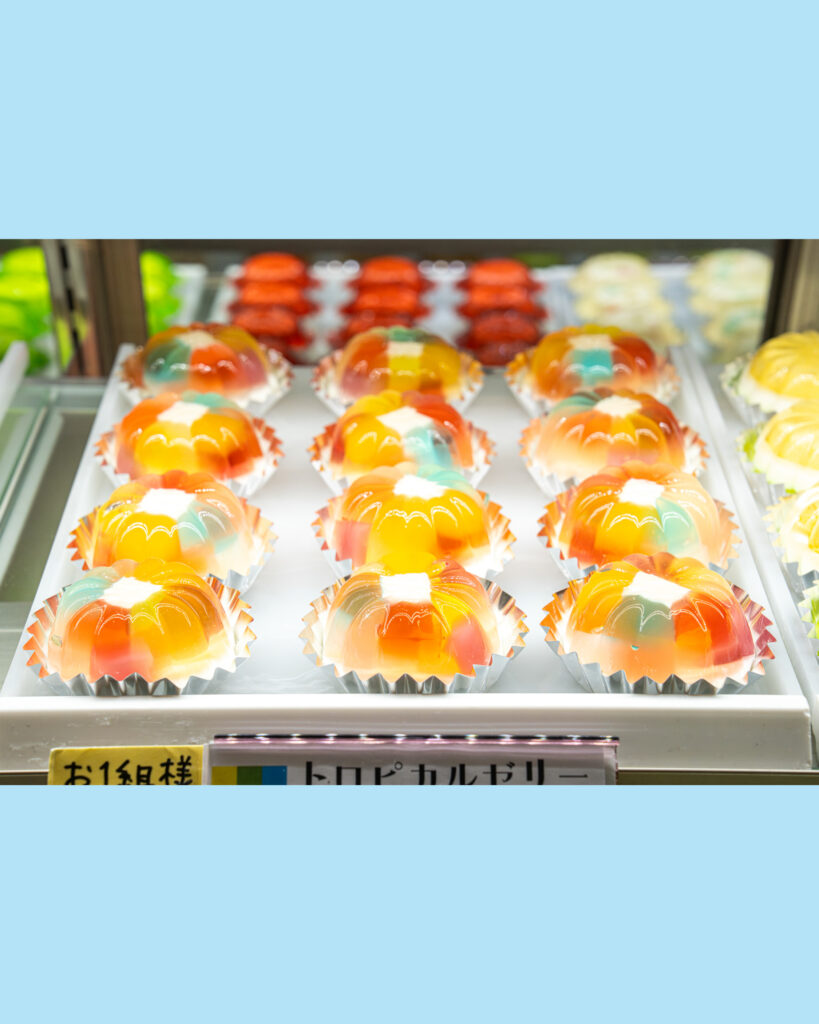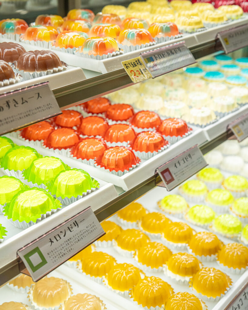 色とりどりのゼリーが並ぶショーケース、